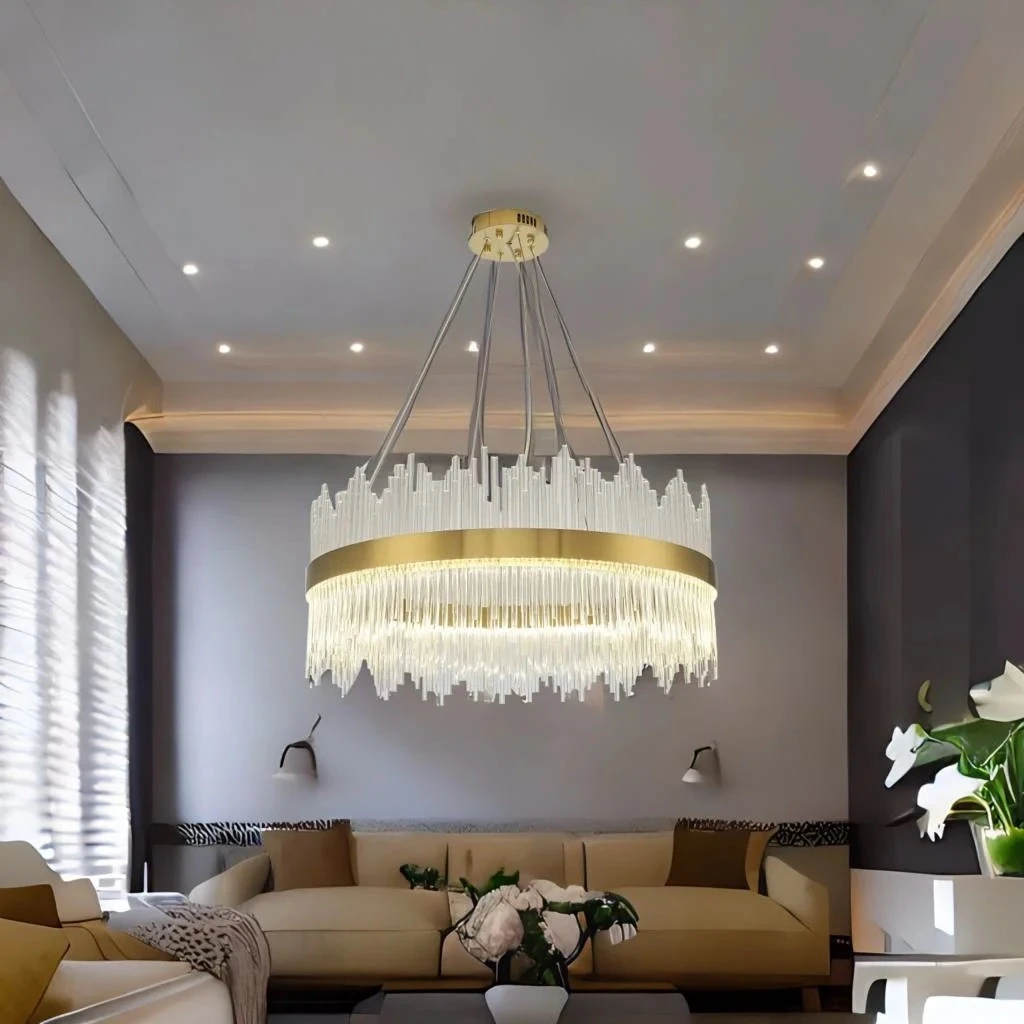 نجف سقفي بتقنية LED يوفر إضاءة متعدّدة الألوان مع لمسة تصميم راقية تناسب غرف المعيشة، الصالونات، وغرف الطعام. قطر النجف 60 سم مما يجعله مناسباً للمساحات المتوسطة والكبيرة الراغبة بمظهر أنيق وفاخر.