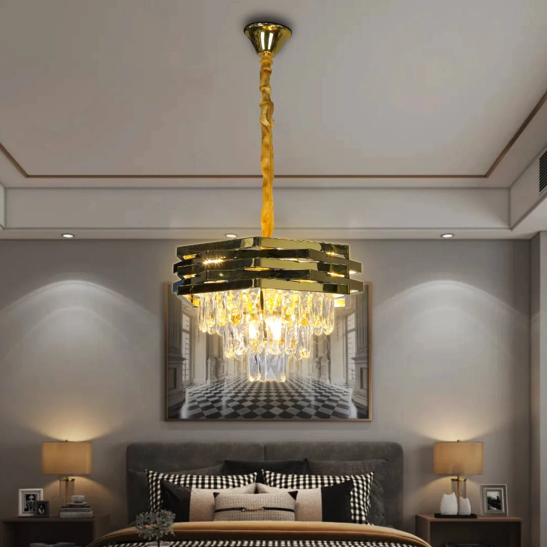تصميم كريستالي أوروبي أنيق يعكس الضوء بسحر، ليحول سقف الغرفة إلى قطعة فنية فاخرة تضيف دفء وفخامة لكل مكان.