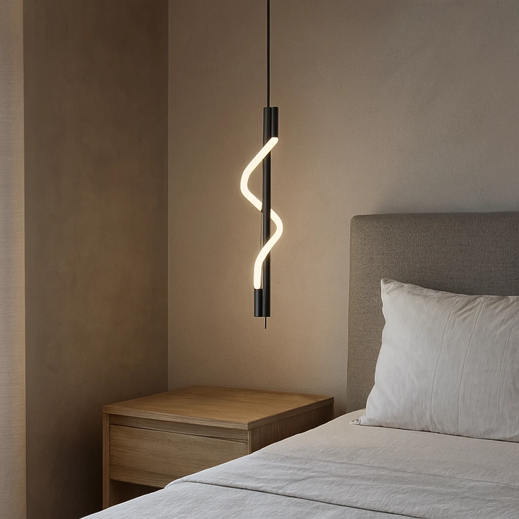 ثريا معلّقة مفردة بتصميم هندسي عصري تضيف لمسة أنيقة وعصرية لأي مكان. توفر إضاءة LED دافئة وموزعة بشكل جيد، مناسبة لخلق جو مريح ومميز في المنزل أو المكتب.