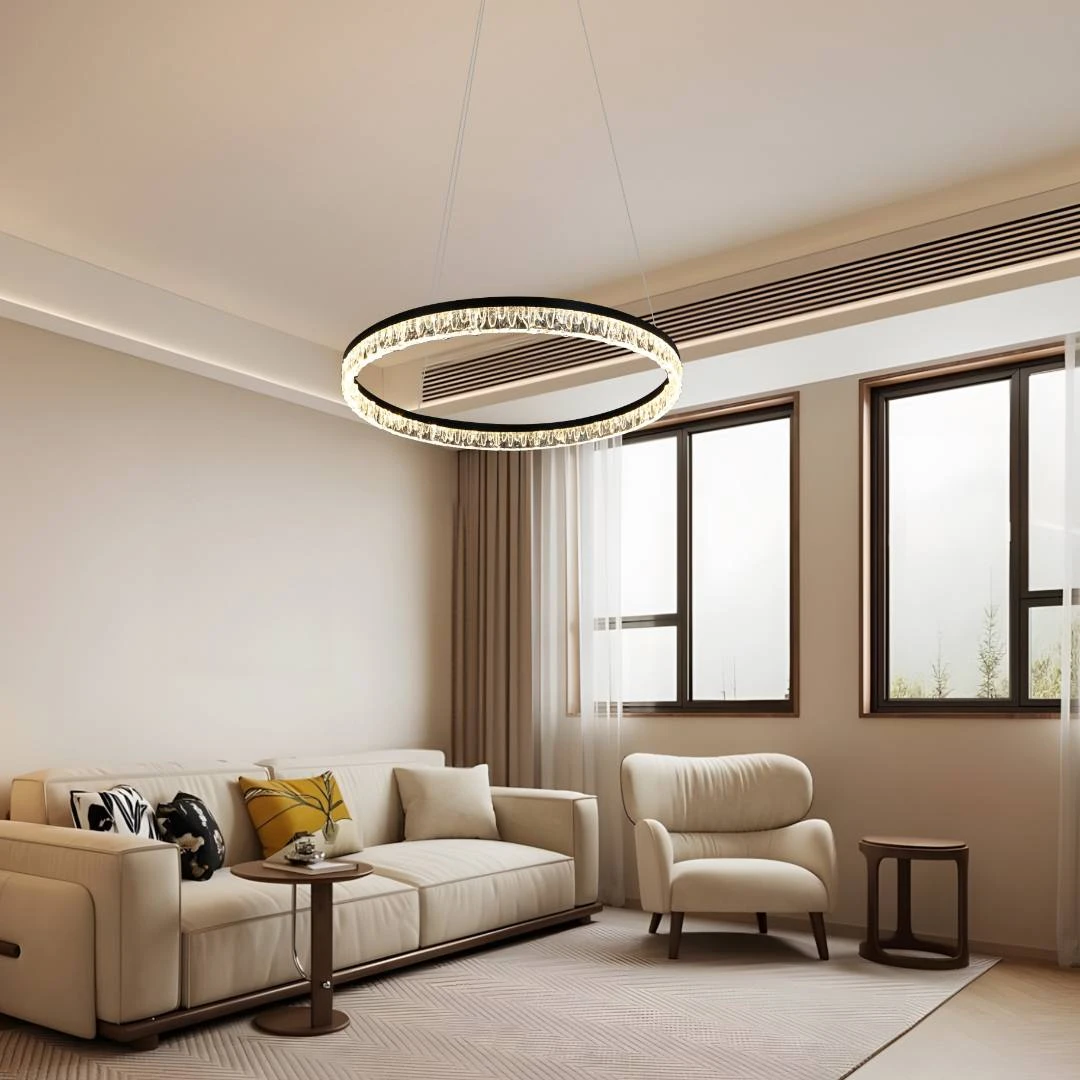 ثريا LED مودرن باللون الأسود تصميمها أنيق وعملي يمنح الغرفة إضاءة متوازنة ومظهرًا راقيًا. مصممة لتعمل فور التركيب بخصائص اختيار لون الإضاءة بسهولة عبر مفتاح الحائط.
