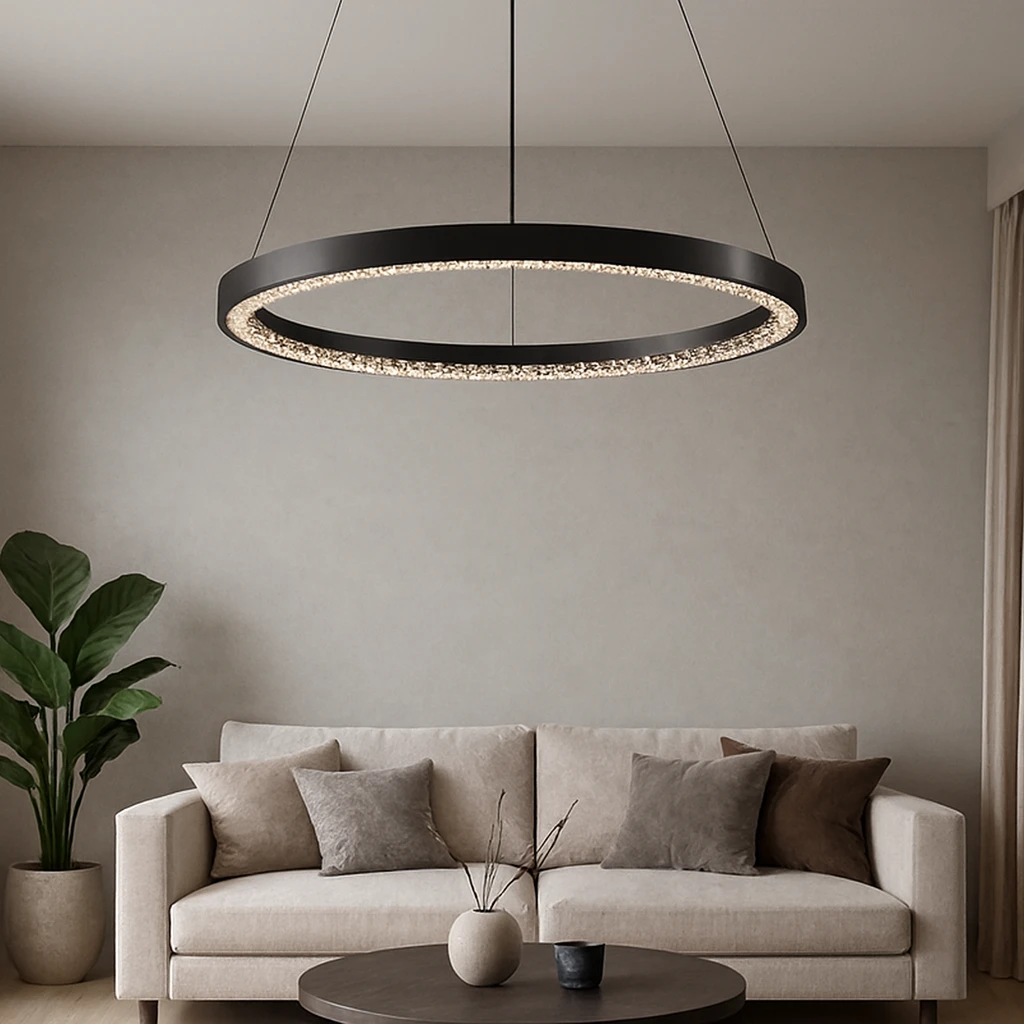 ثريا مودرن أنيقة باللون الأسود تمنحك إضاءة قابلة للتعديل لتناسب أجواء غرف النوم والمجالس. تصميمها العصري يضفي لمسة من الرقي والدفء على المساحة، مع مصابيح LED مدمجة جاهزة للاستخدام فورًا.