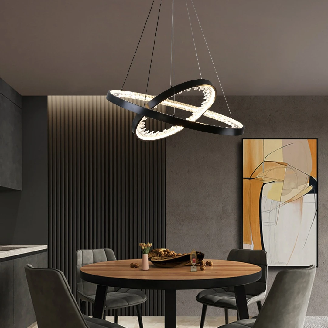نجف مودرن أسود — إضاءة ثلاثية الألوان • مقاس 40×60 سم • 65 واط