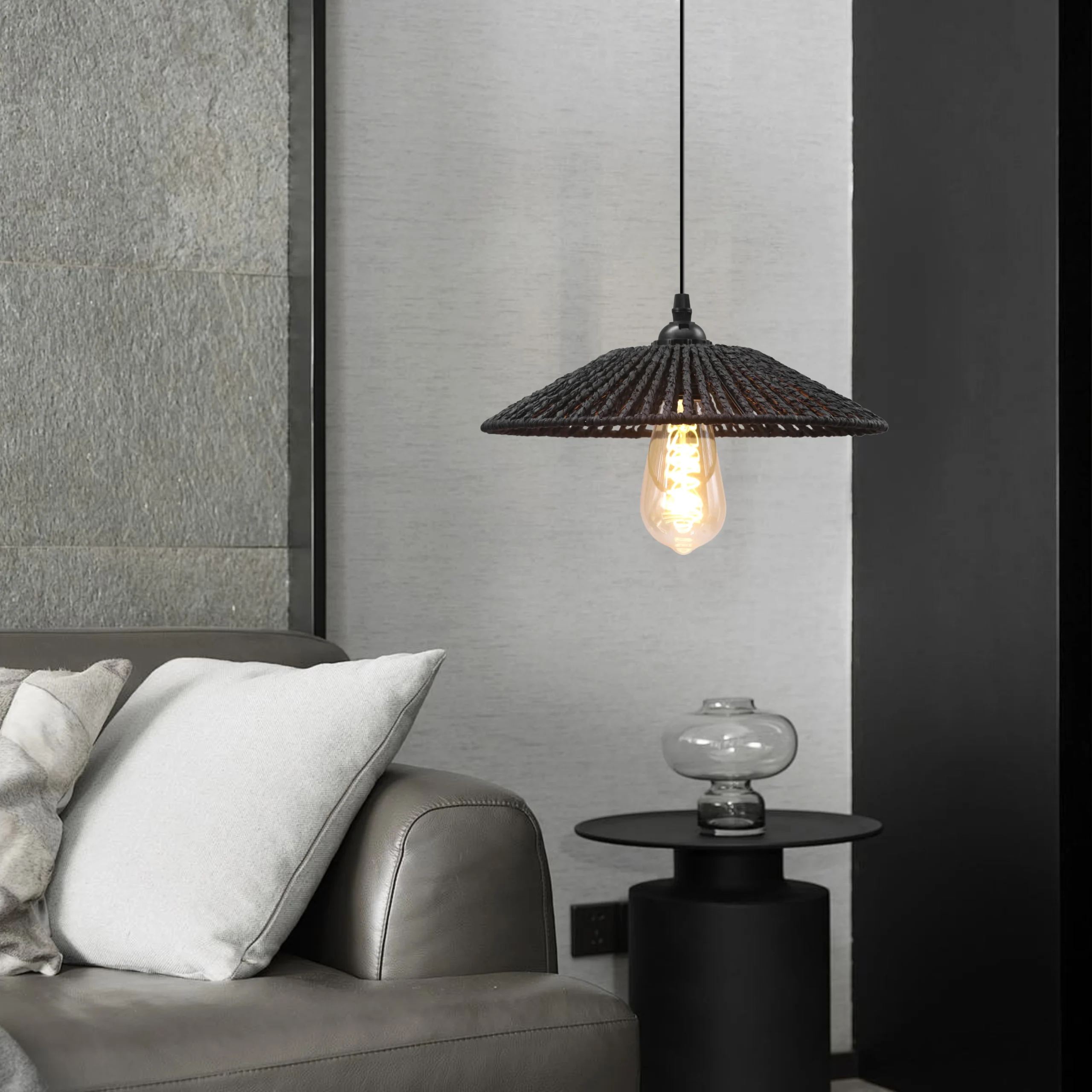 ثريا مودرن بتصميم حبال بوهيمي يدمج الطابع الريفي مع لمسة أنيقة ومعاصرة، لتجعل الإضاءة جزءًا طبيعياً من ديكور المكان وتضيف دفئاً وشخصية للمساحة.