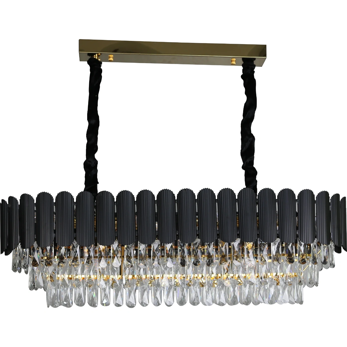 نجف مودرن بغطاء أسود وتفاصيل ذهبية — مقاس 35 + 100 سم، 10 لمبات (E14)
