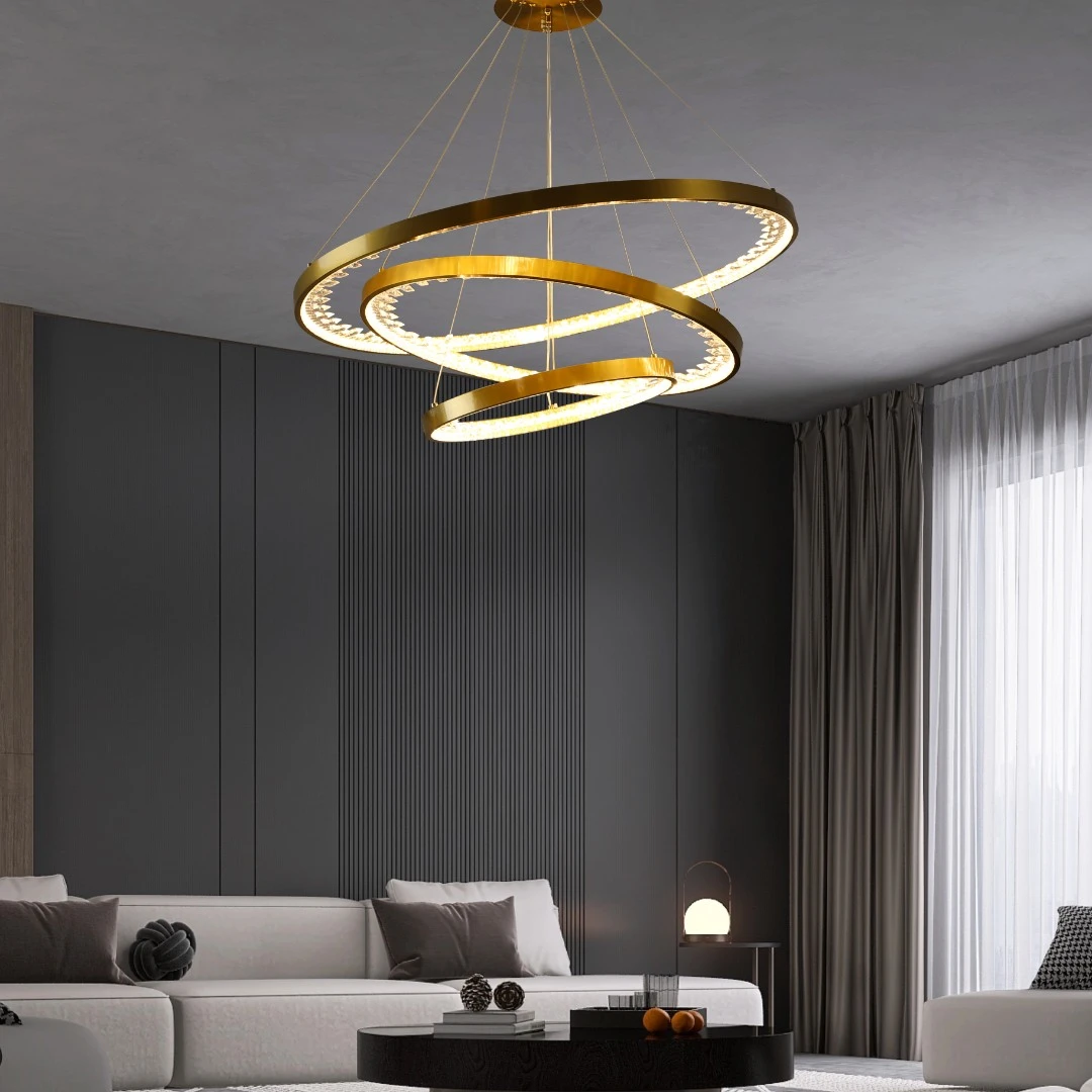 • ثلاث عناصر إضاءة بمقاسات متدرجة: 40 سم، 60 سم، 80 سم — لتوزيع ضوئي متوازن وجذاب.