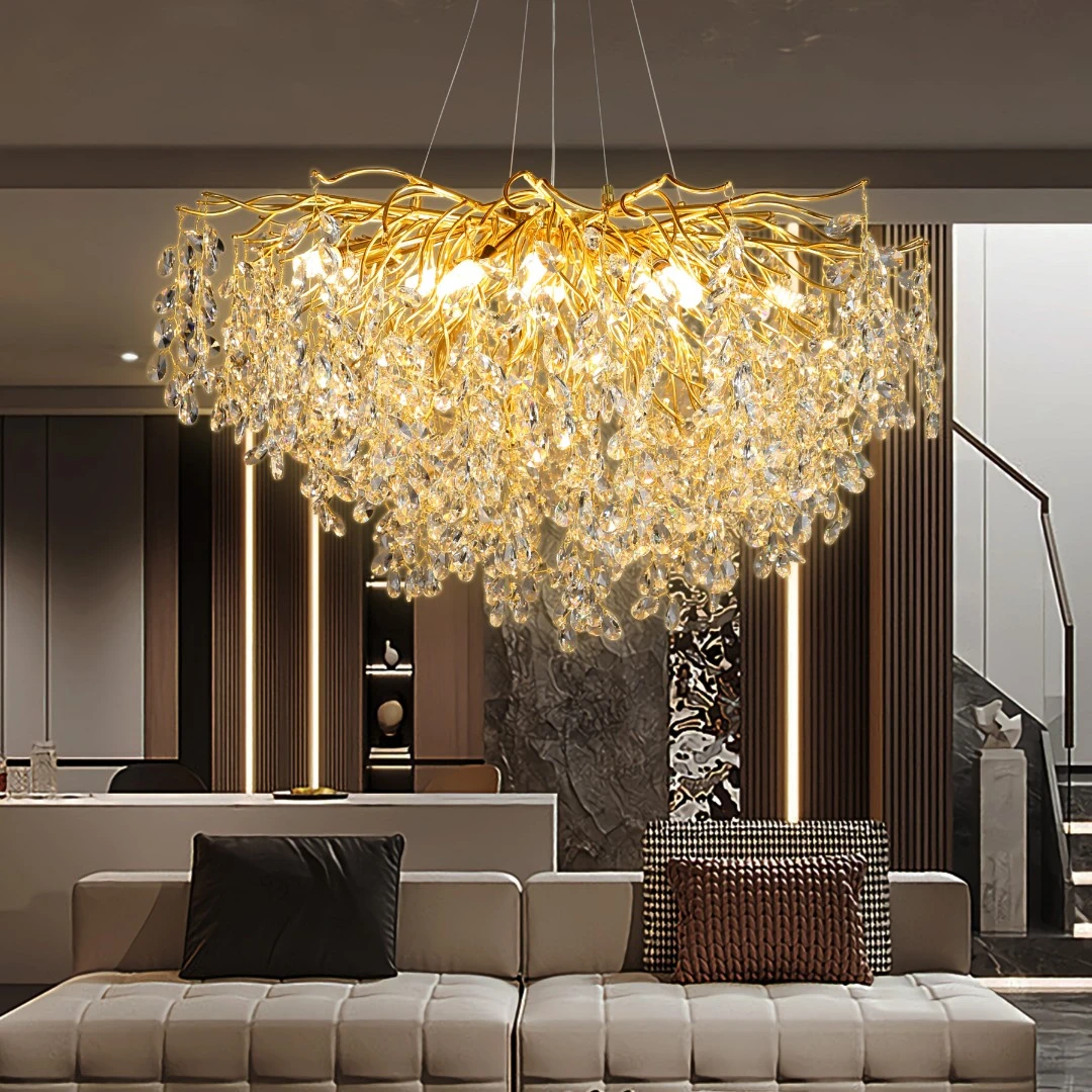 نجف مودرن ذهبي بشفاف، 15 لمبة E14، مقاس 1000 مم