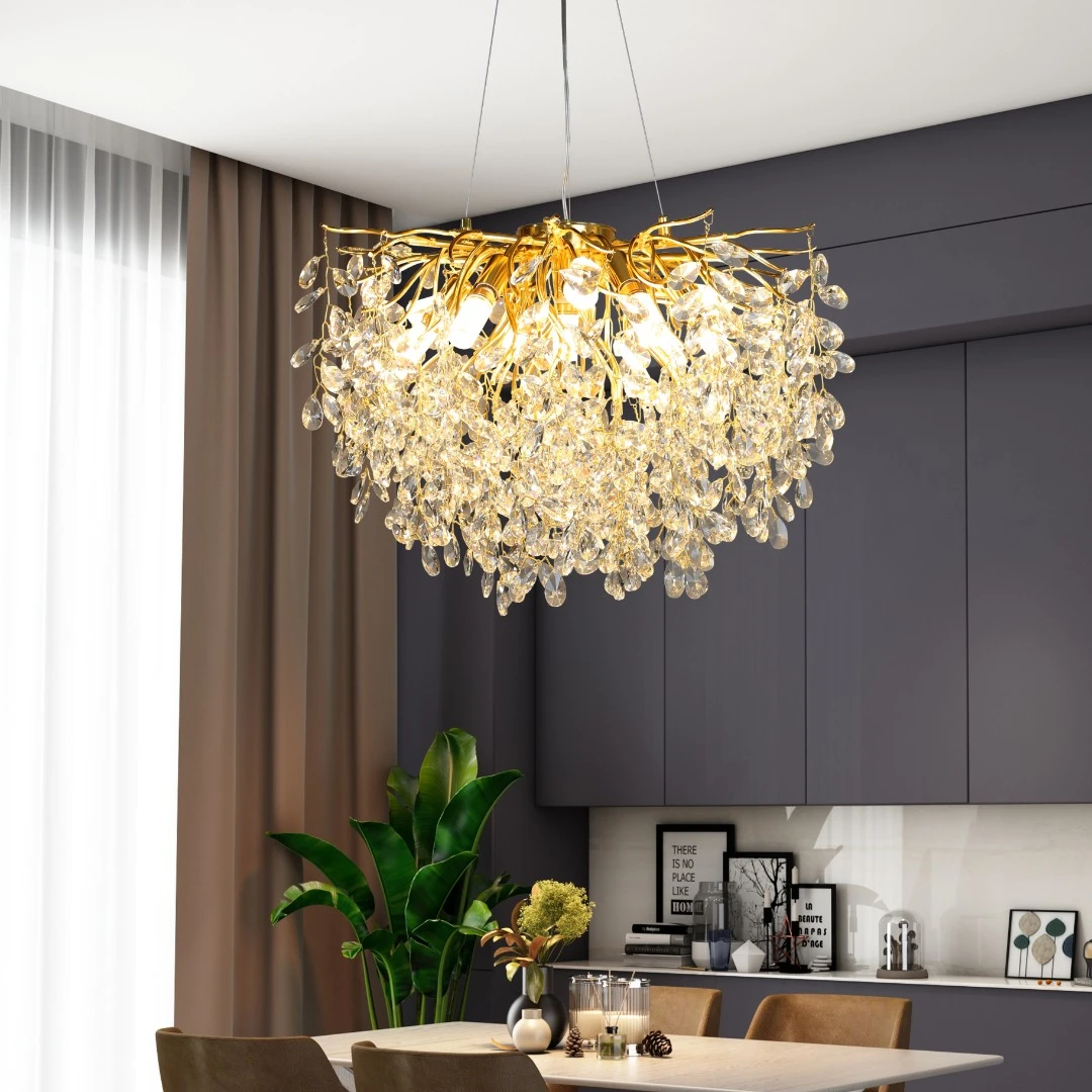 نجف مودرن ذهبي مع شفاف E14×10 — مقاس 600 ملم