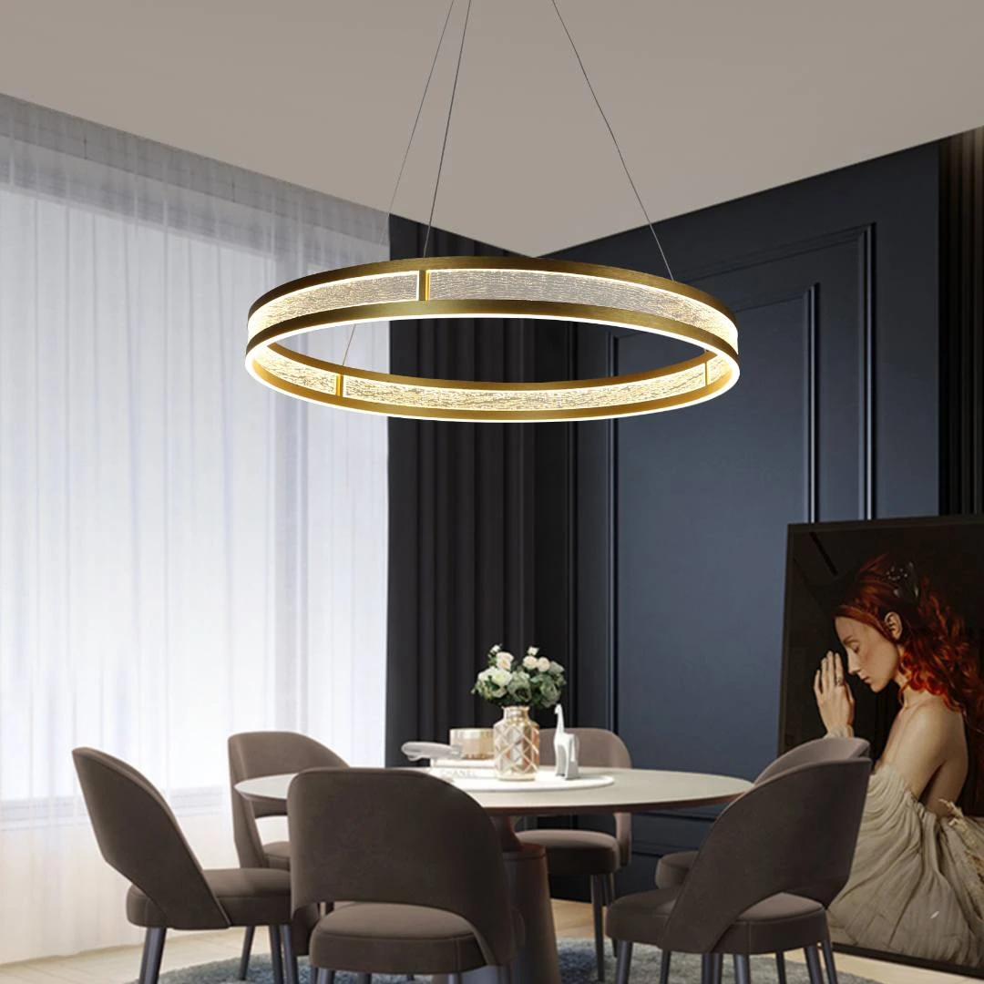 نجف مودرن أنيق يضفي لمسة فخامة وحيوية على أي مساحة داخلية. تصميم ذهبي عصري مع إضاءة LED مدمجة جاهزة للاستخدام فورياً، يوفر مرونة في اختيار جو الغرفة من خلال ثلاثة ألوان إنارة متكاملة.