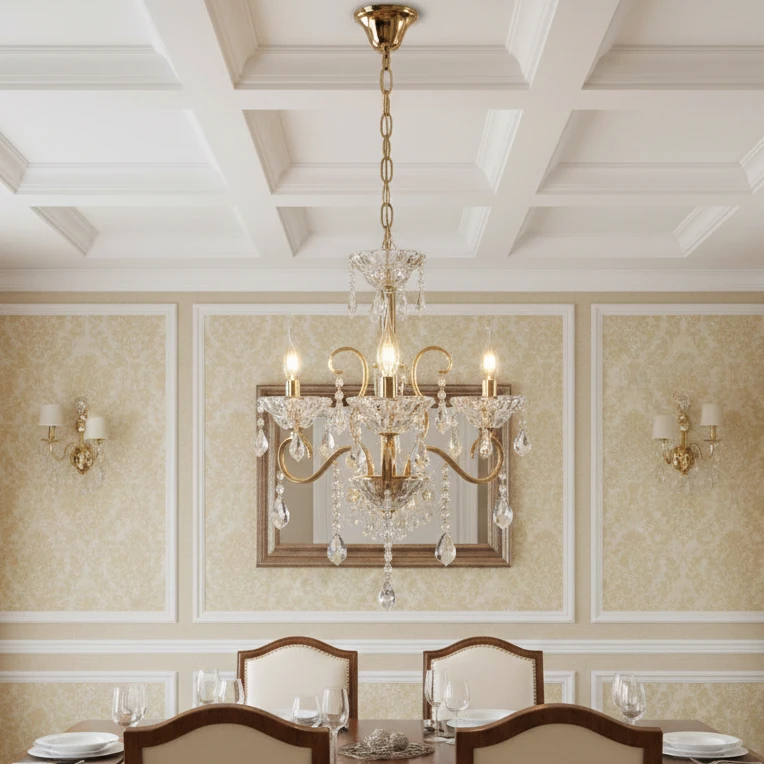 ثريا تجمع بين الطابع الكلاسيكي والفخامة العصرية لتضيف لمسة ملوكية لا تتغير مع مرور الزمن. تصميم شمعداني أنيق بلمسات ذهبية وفضية يناسب الصالونات وغرف الاستقبال والمعيشة، مع دعم لمبات E14 لتوفير إضاءة دافئة وهادئة.