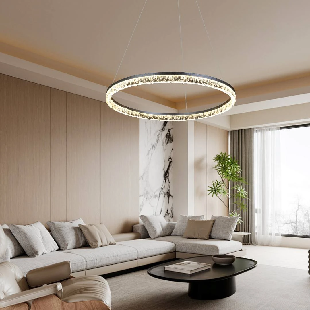 إضاءة عصرية وأنيقة بتصميم مودرن فضي يعيد حيوية المكان. نجف مزود بمصدر LED ثلاثي الألوان يتيح لك التبديل بين درجات الإضاءة ليتناسب مع أجواء الغرفة واحتياجاتك.