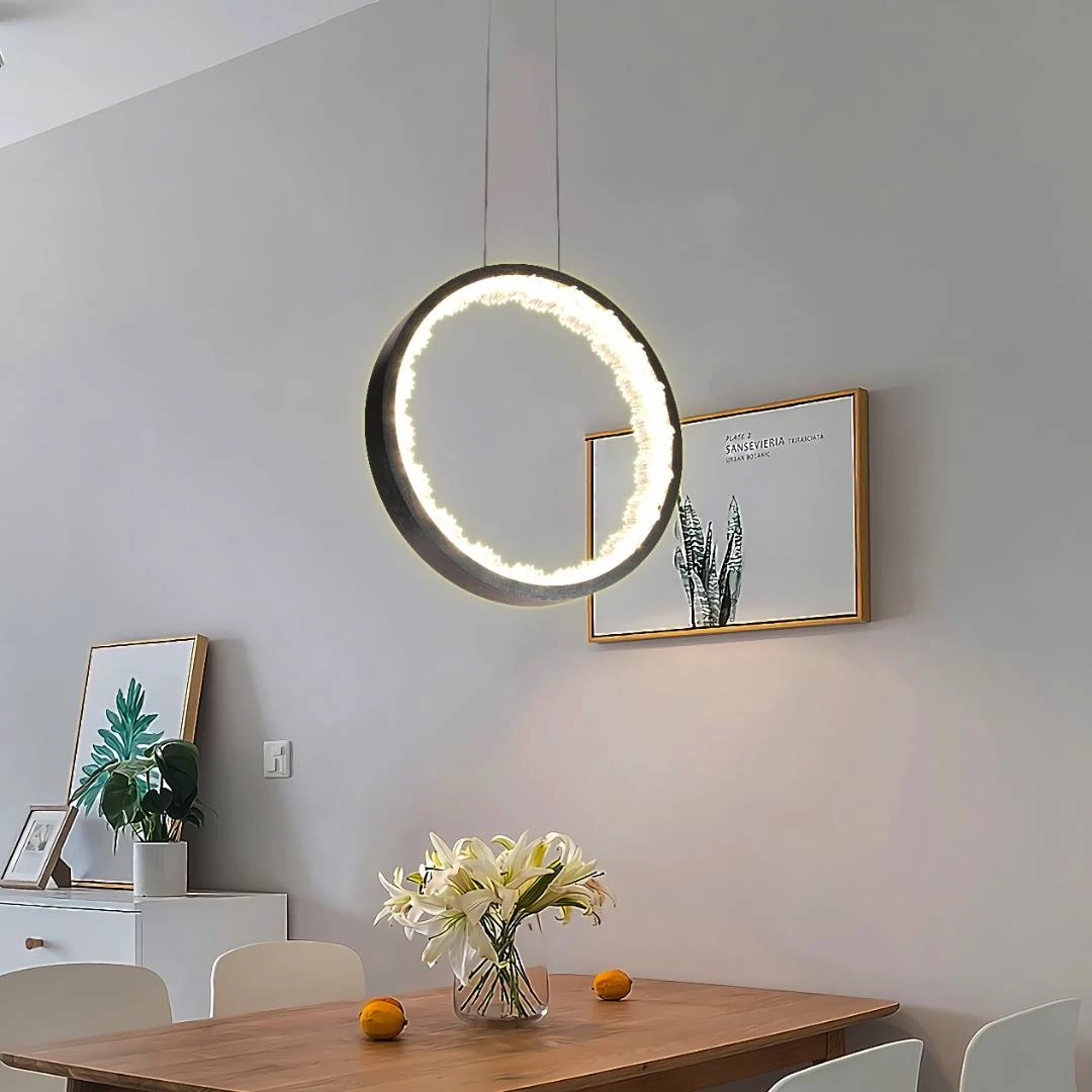 نجف سقفي بتشطيب فضي عصري، مخصص للمساحات الداخلية مثل غرف المعيشة، غرفة النوم، والممرات. يوفّر النظام ثلاث درجات لونية للإنارة (دافئ، طبيعي، بارد) لتتناسب مع أوقات اليوم والمزاج، بقدرة إجمالية 55 واط وحجم قطر 40 سم.