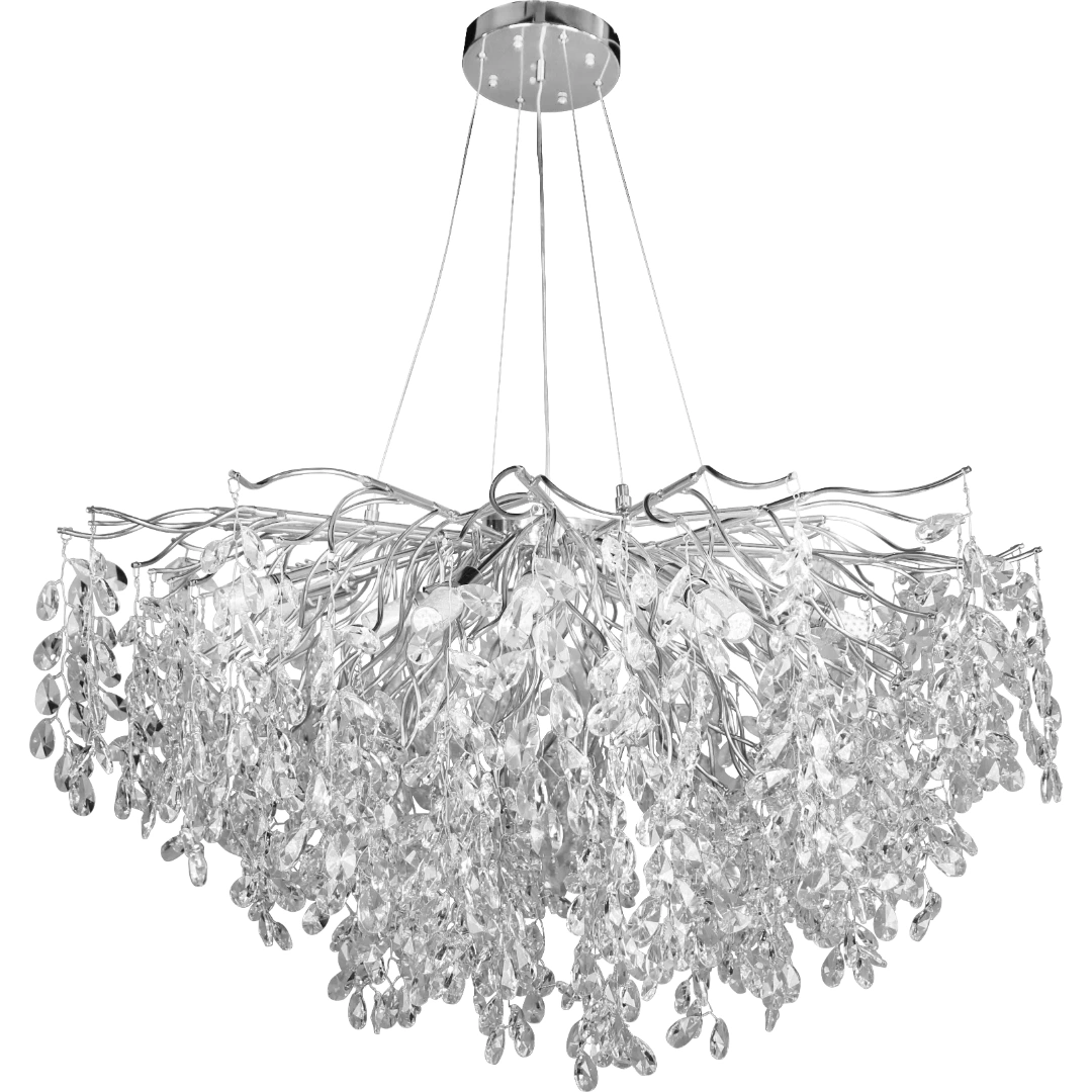 نجف مودرن أنيق يجمع بين لمسة معدنية فضية وعناصر زجاجية شفافة لتعزيز الطابع العصري للمساحات الداخلية. تصميمه يوزع الإضاءة بشكل واسع ويتيح لك اختيار لمبات E14 المناسبة لتحديد درجة السطوع واللون.