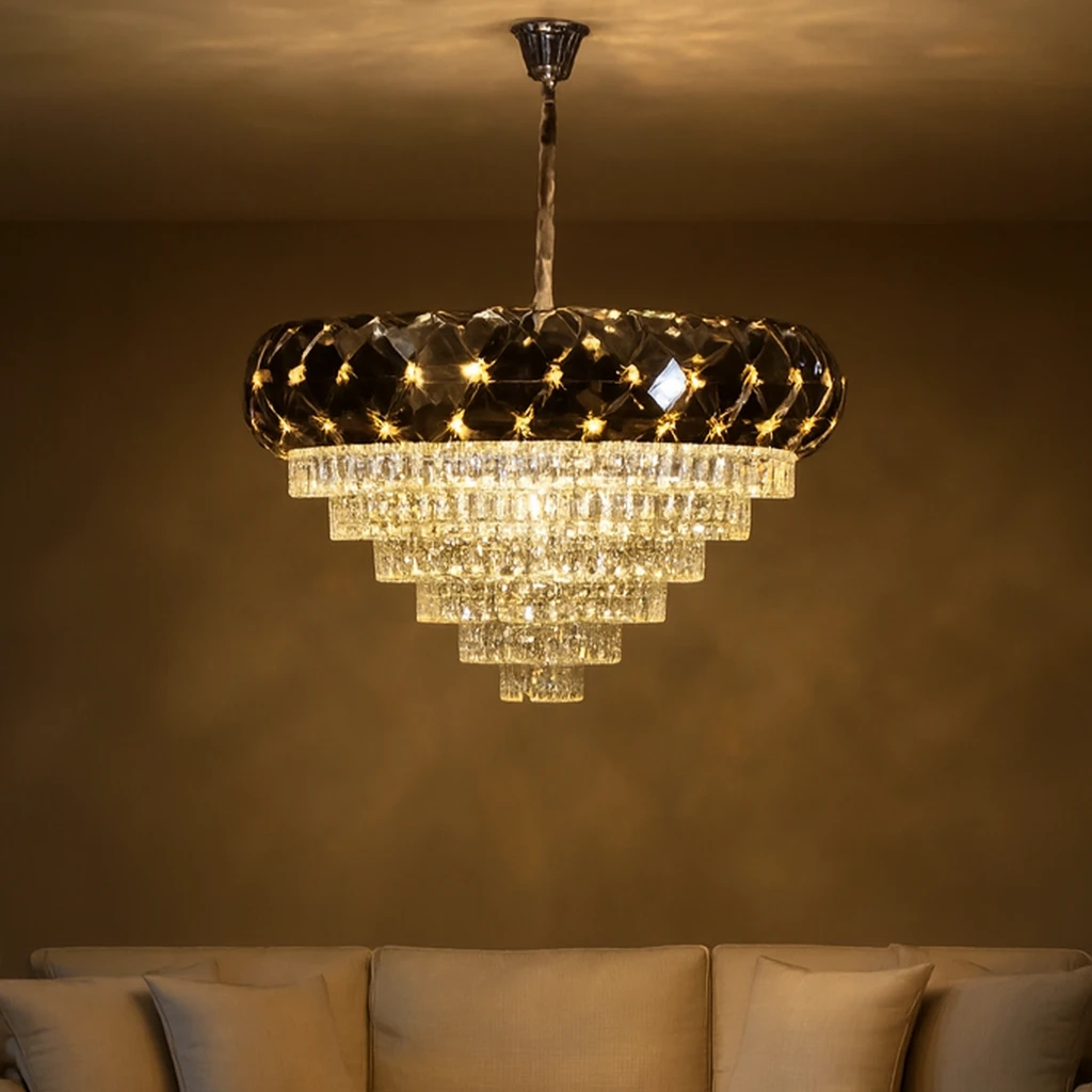 ثريا كريستال بطابع أوروبي فخم تمنح المكان إضاءة متوهجة وأناقة راقية. تصميم يجمع بين البُعد الكلاسيكي لنقوش القصور الأوروبية واللمسة العصرية باللون الفضي، لتكون قطعة مركزية تزيّن غرف المعيشة، الصالونات، قاعات الطعام أو المداخل الفسيحة.