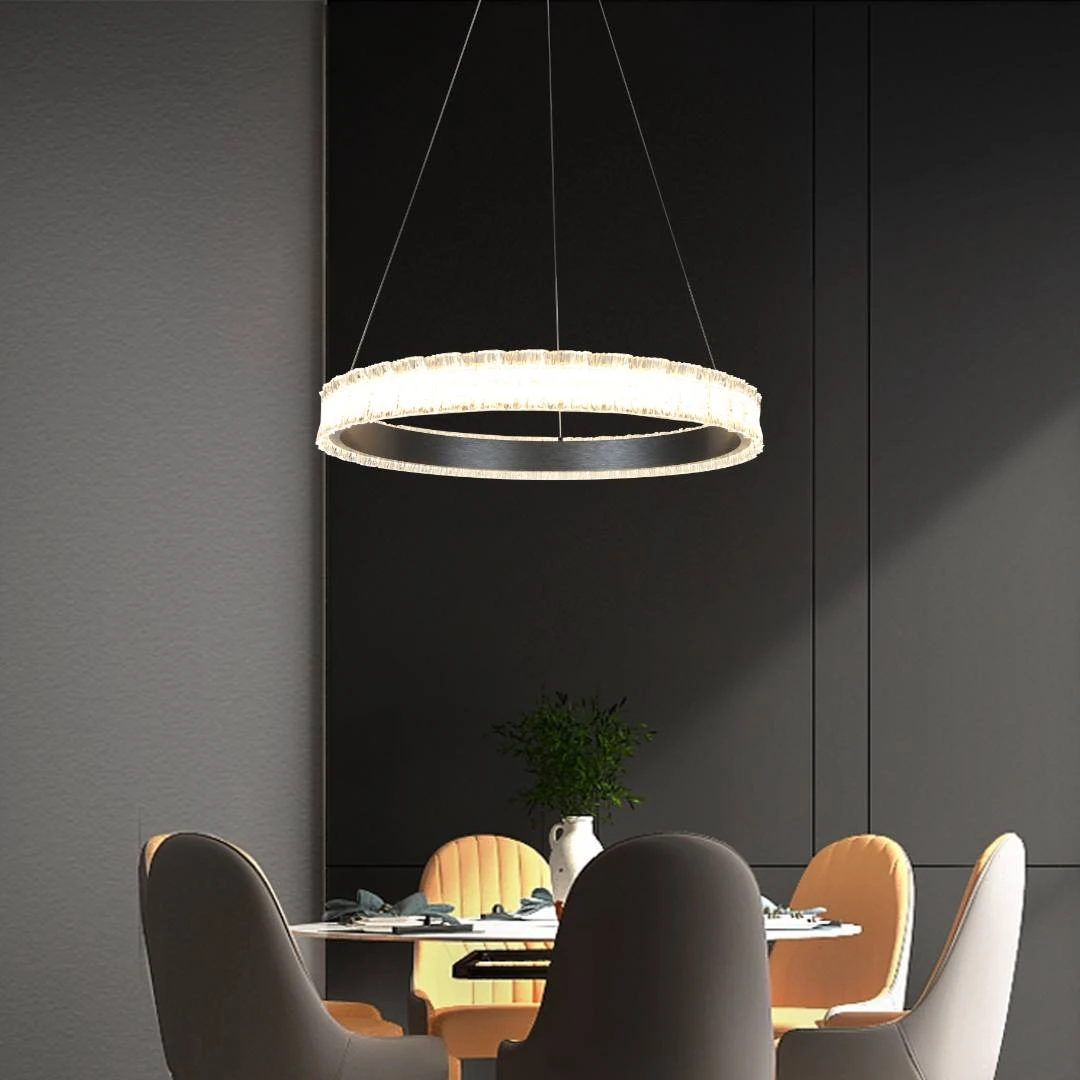 إضاءة نجف فاخرة بتصميم مودرن أنيق تضيف لمسة جمالية ودافئة إلى منزلك، مع قدرة إضاءة قابلة للتعديل تناسب مختلف الأجواء.