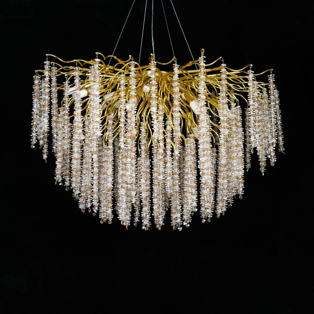 ثريا مودرن أنيقة تضفي لمسة فاخرة ودافئة على أي غرفة. تصميم ذهبي مع قطع زجاجية شفافة وعسلي يعطي توازنًا بين اللمعان والدفء، وإضاءة هادئة مناسبة لغرف المعيشة، غرف النوم أو الصالونات.