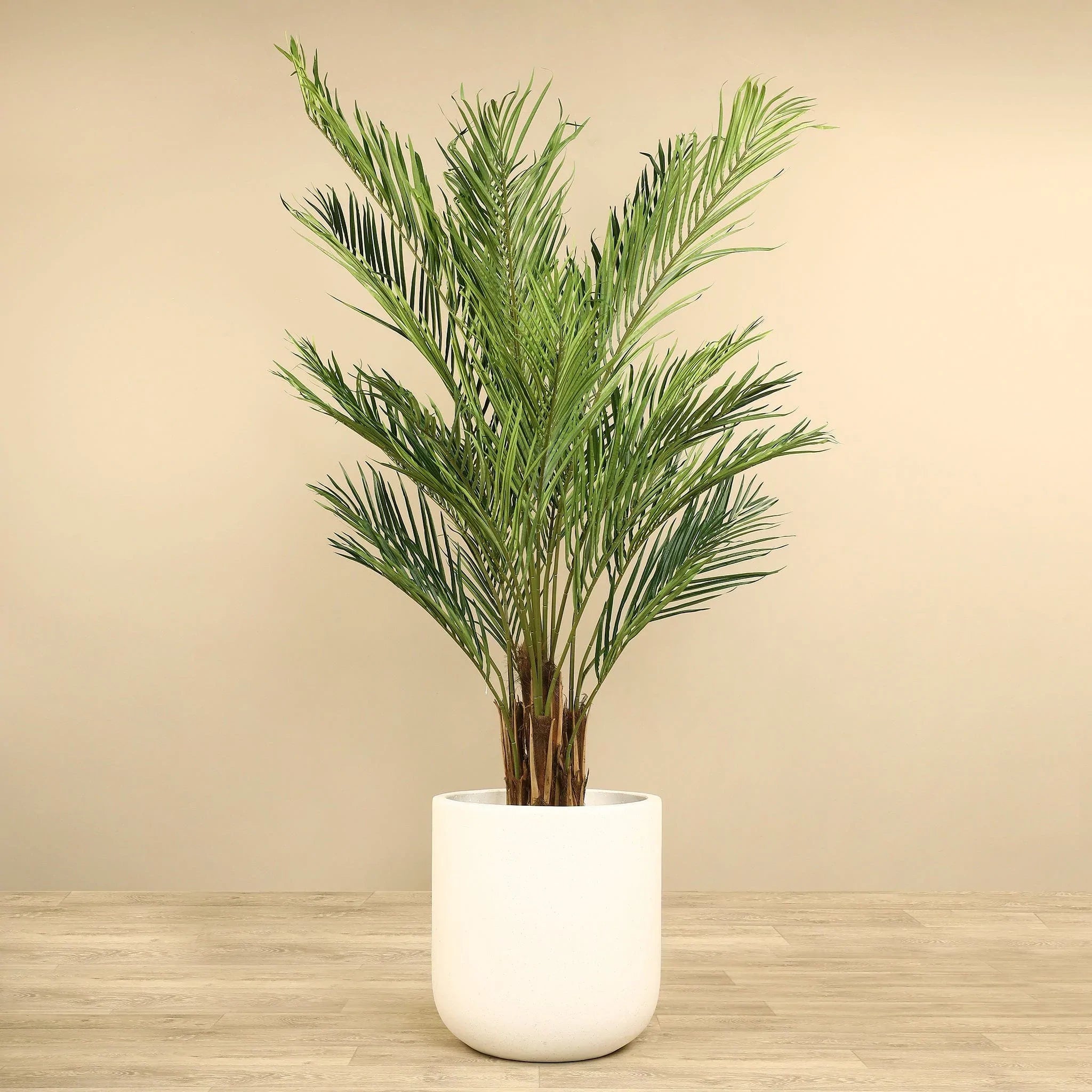 خضرة غنّاء ولمسة من الفخامة. هذا النخيل الصناعي الأخضر يبدو واقعيًا بشكل مذهل سواء للعين أو عند اللمس. الشجرة تأتي مركبة بالكامل — ما عليك سوى ثني الفروع حتى تصل إلى الكثافة والشكل المرغوب، ثم اختيار الأصيص الذي يناسب ديكورك ووضعها في المكان المناسب.