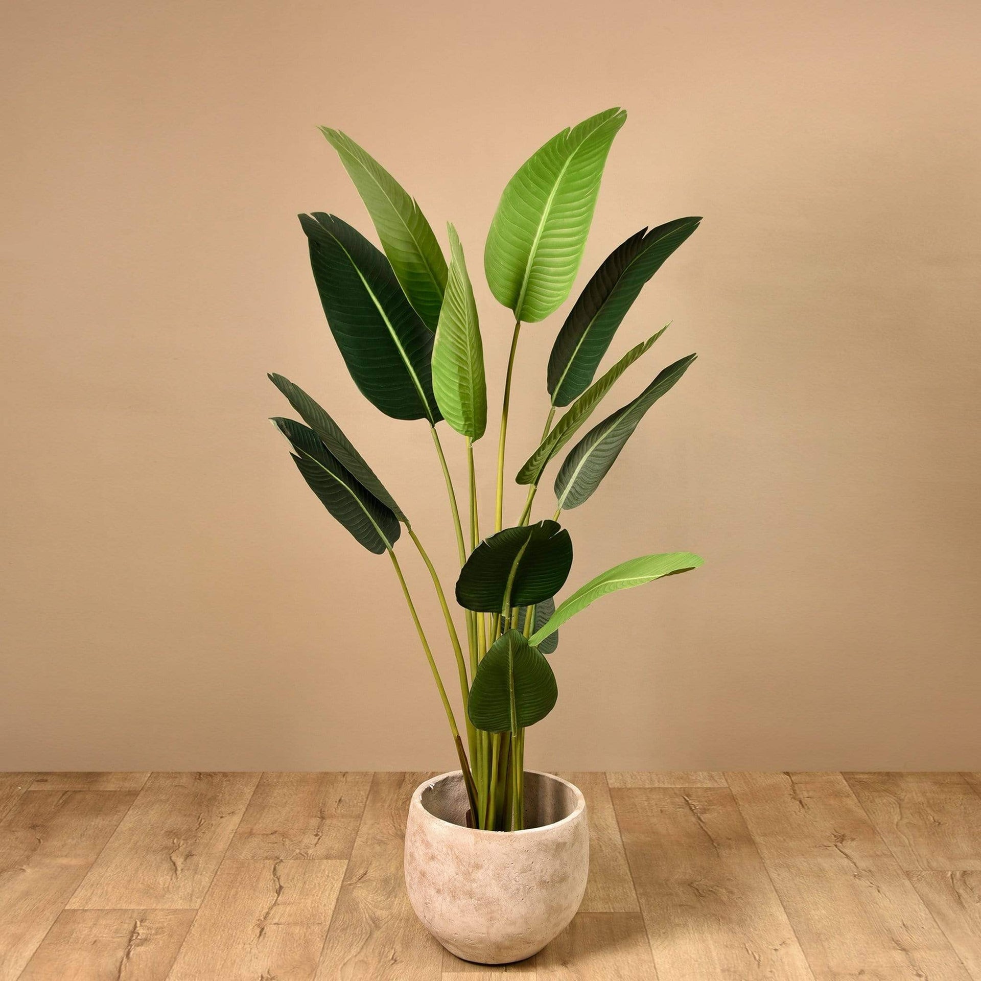 نخلة عصفور الجنة خيار مفضّل لدى مصممي الديكور بفضل مظهرها العصري والفخم الذي يضفي لمسة من البهجة والجمال على أي مكان. تصميمها يعكس الأناقة والاهتمام بالتفاصيل، لتملأ منزلك بأجواء جذابة دون عناء العناية بالنباتات الحقيقية.