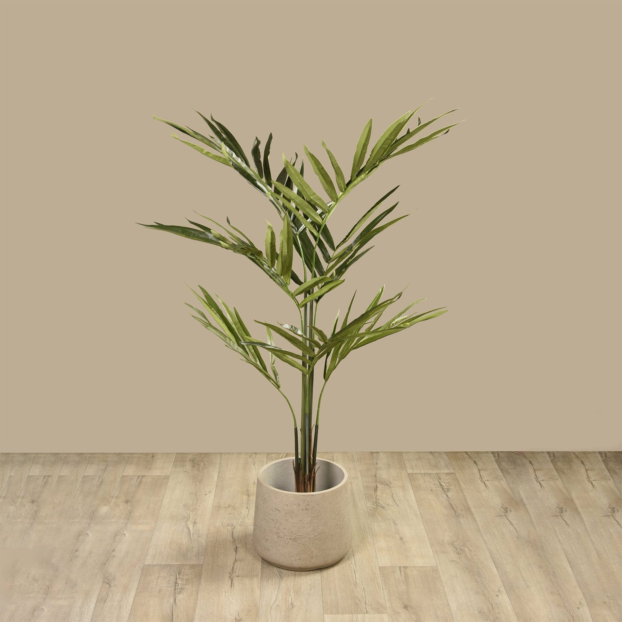 نخلة كنتيا رمز للخلود والأناقة الاستوائية. نسخة بلومر الصناعية تحافظ على مظهرها المزهر والأنيق دون حاجة إلى عناية مستمرة، لتمنح منزلك دفء وسحر الأجواء الاستوائية طوال الوقت.
