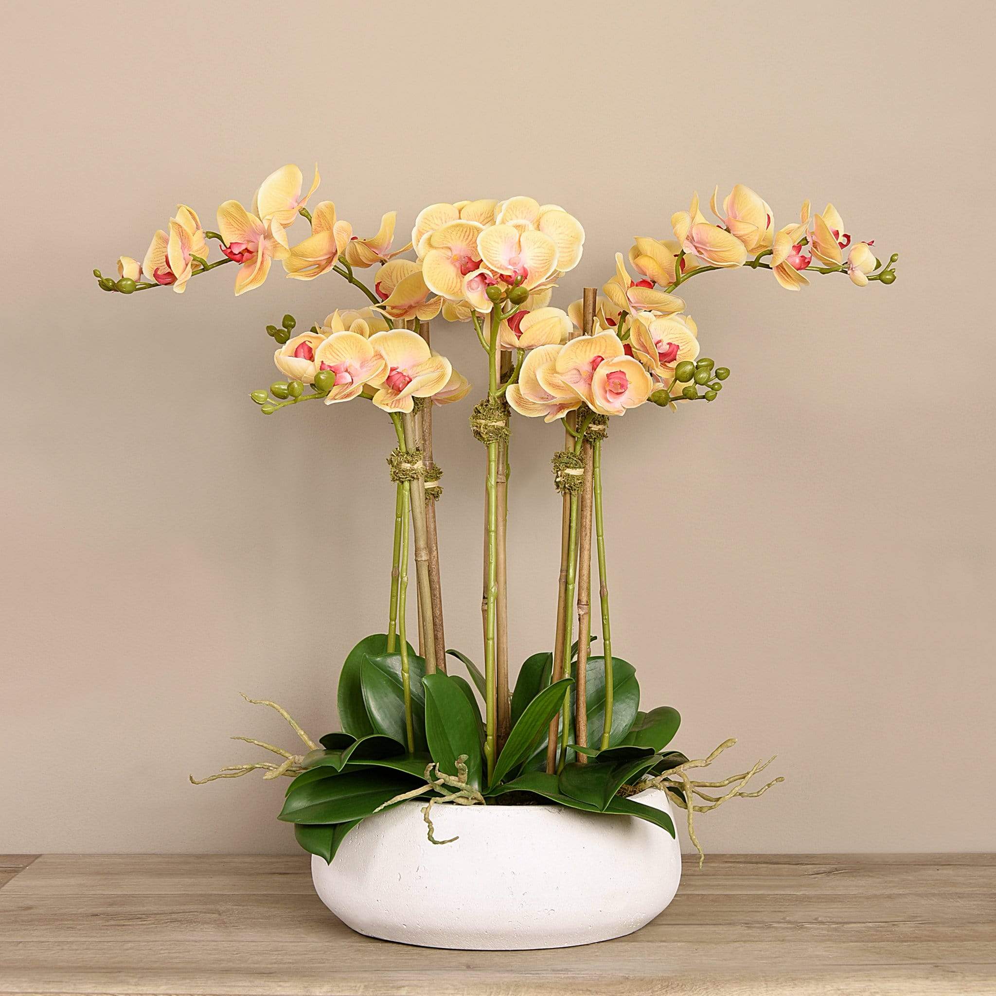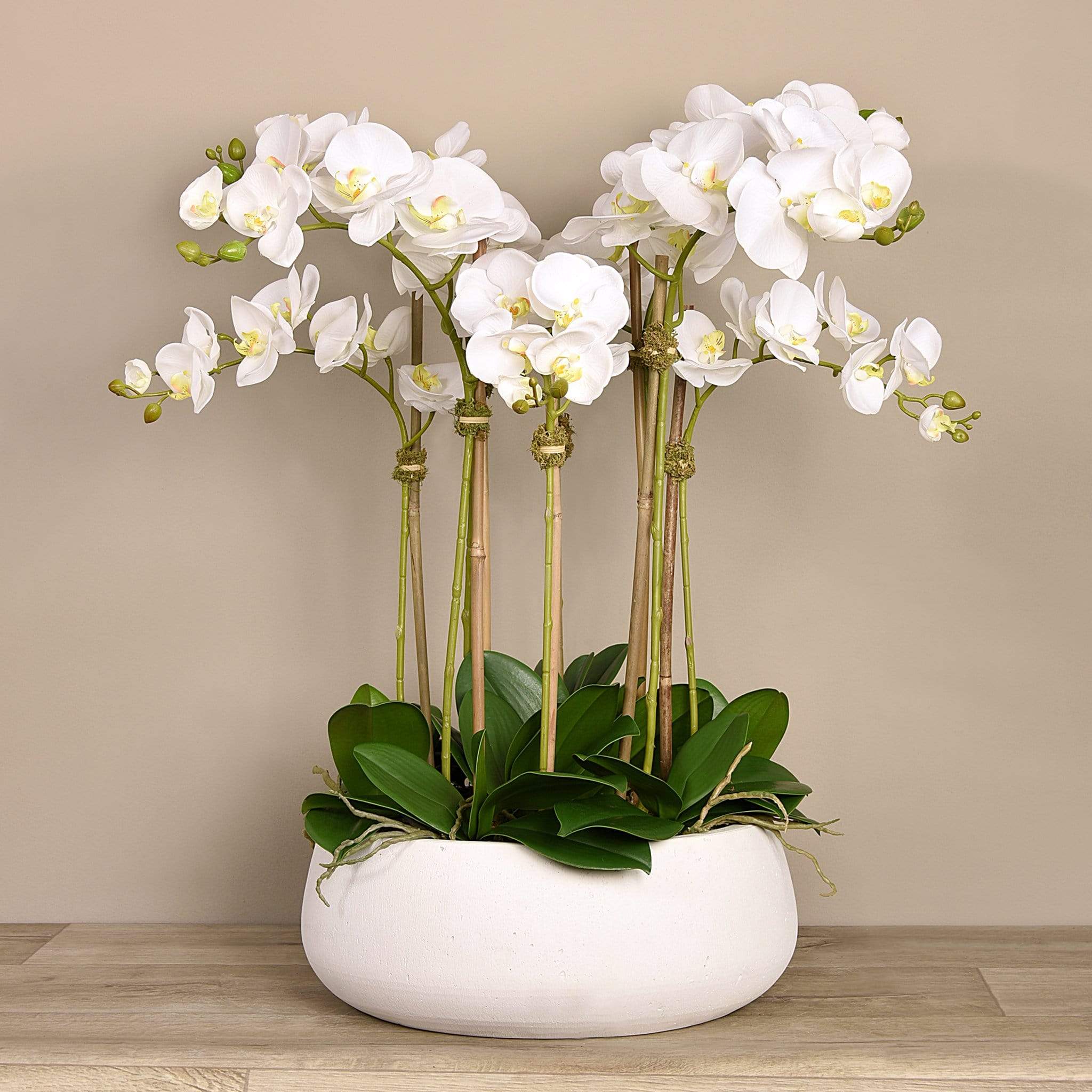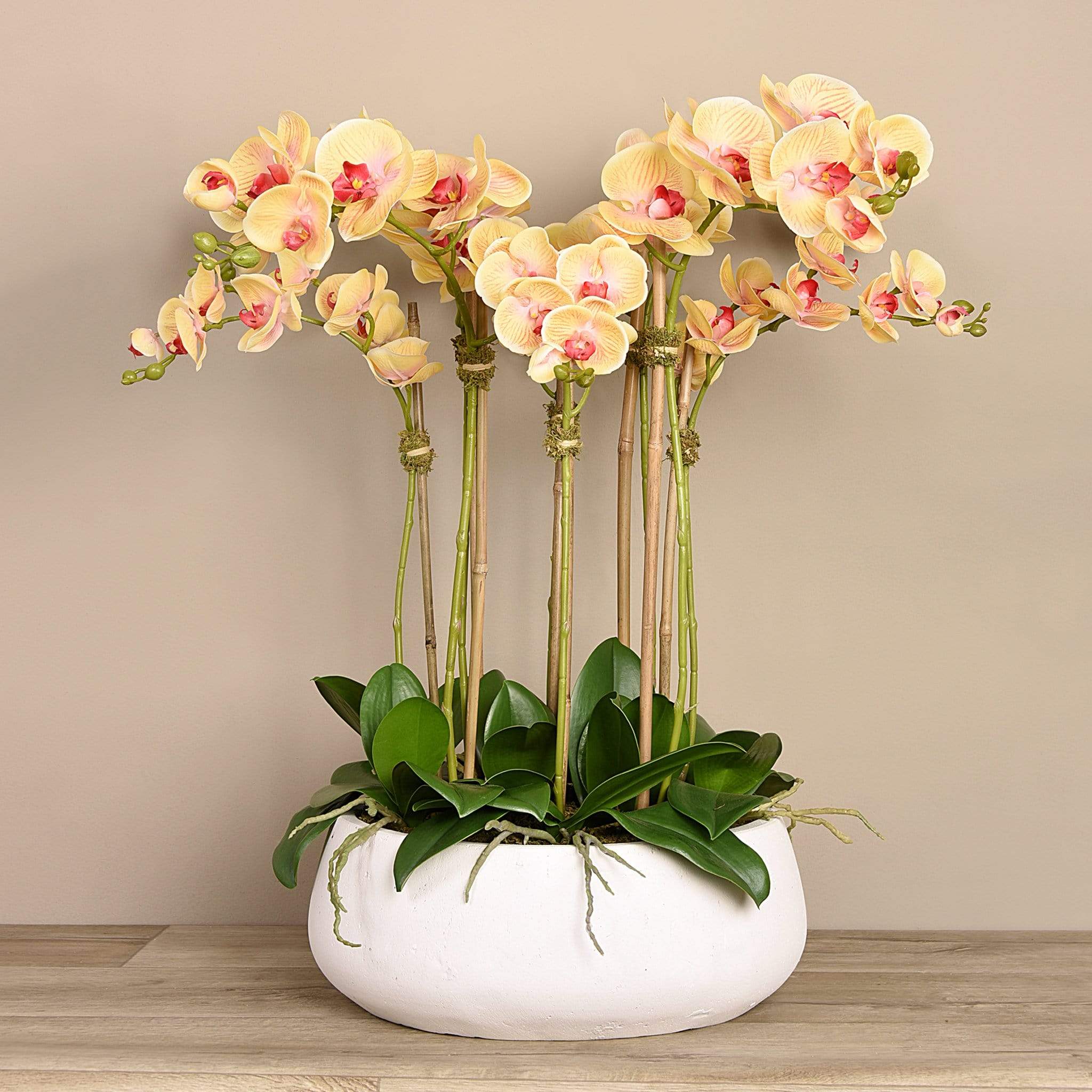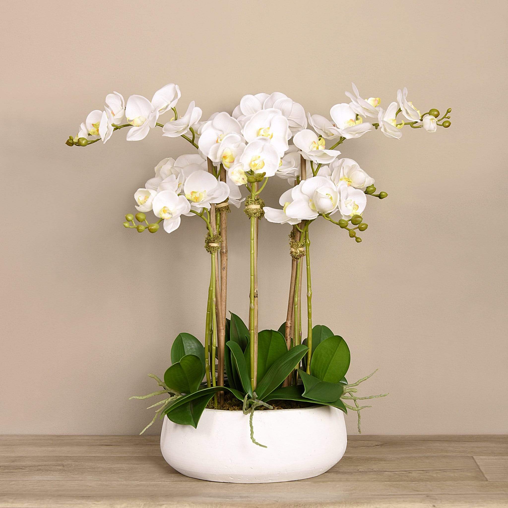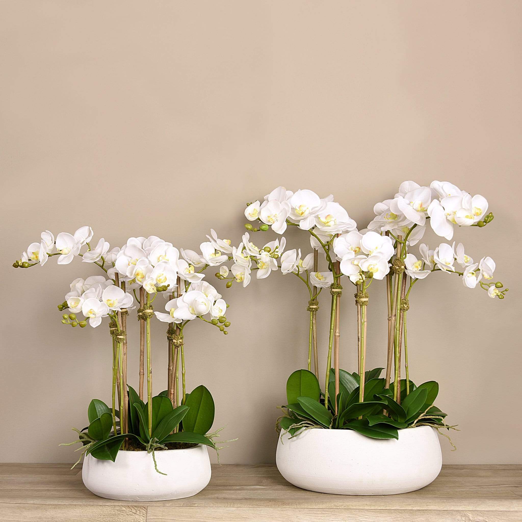حوّل أي مساحة معيشة إلى ملجأ هادئ مع هذا الترتيب الجذاب. مصنوعة من قماش حريري بملمس واقعي، تبدو النباتات والبتلات حقيقية بشكل ملحوظ من الأوراق حتى الجذور. يبرز الوعاء الأبيض الأنيق مظهرها ويخلق تبايناً منعشاً مع الأوراق الخضراء والزهور الأبيض أو الأصفر أو الوردي.