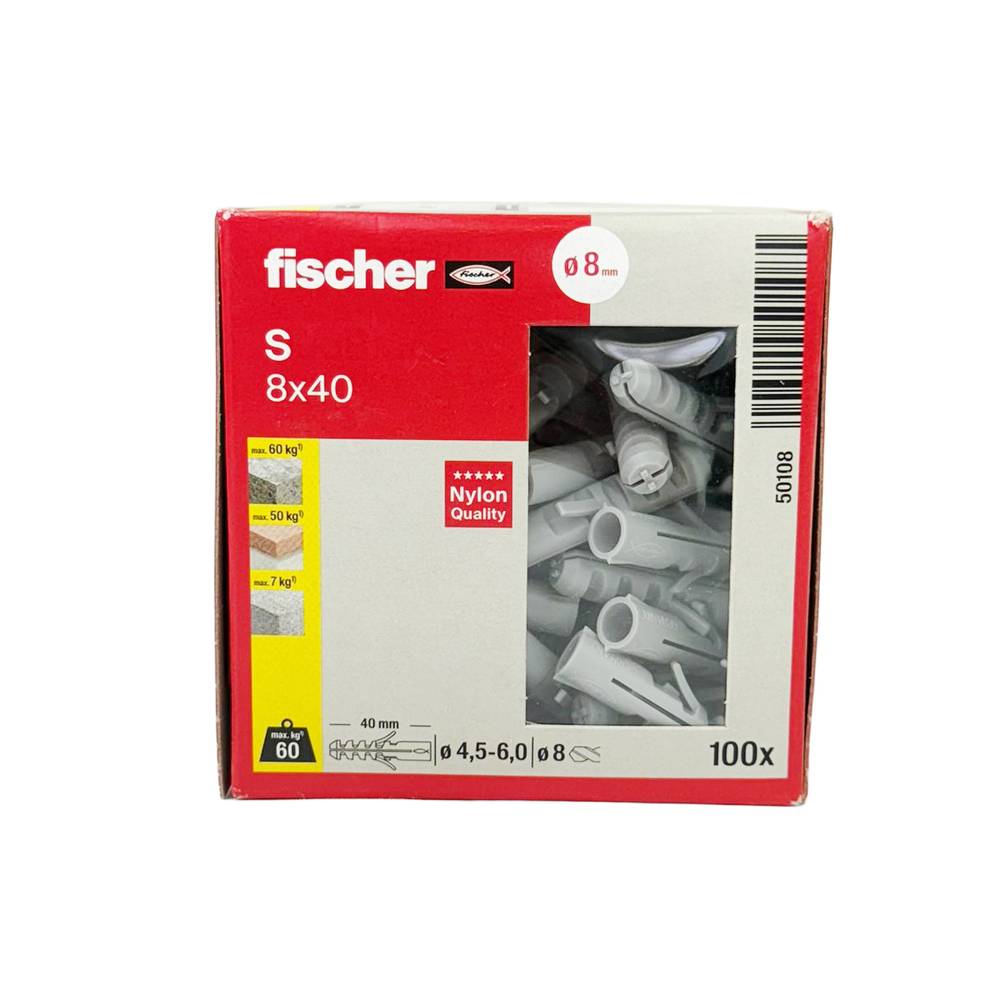 خابور بلاستيكي بعرض 8 ملم من علامة fischer (الرمز 50108)، مصمم لتثبيت قوي وآمن في الجدران الخرسانية والبلوك والحوائط الجافة.