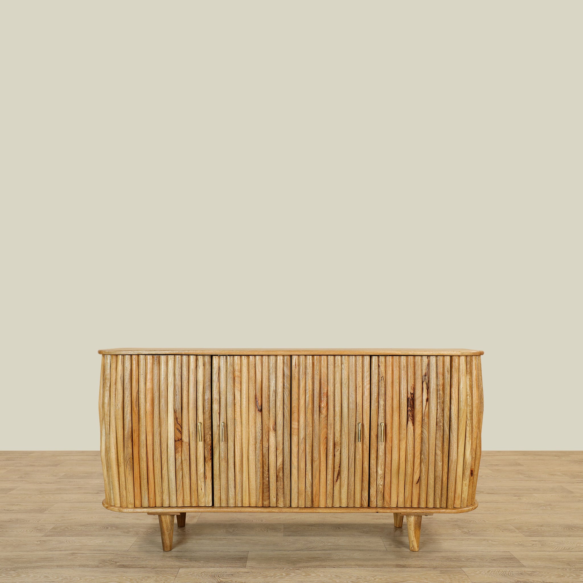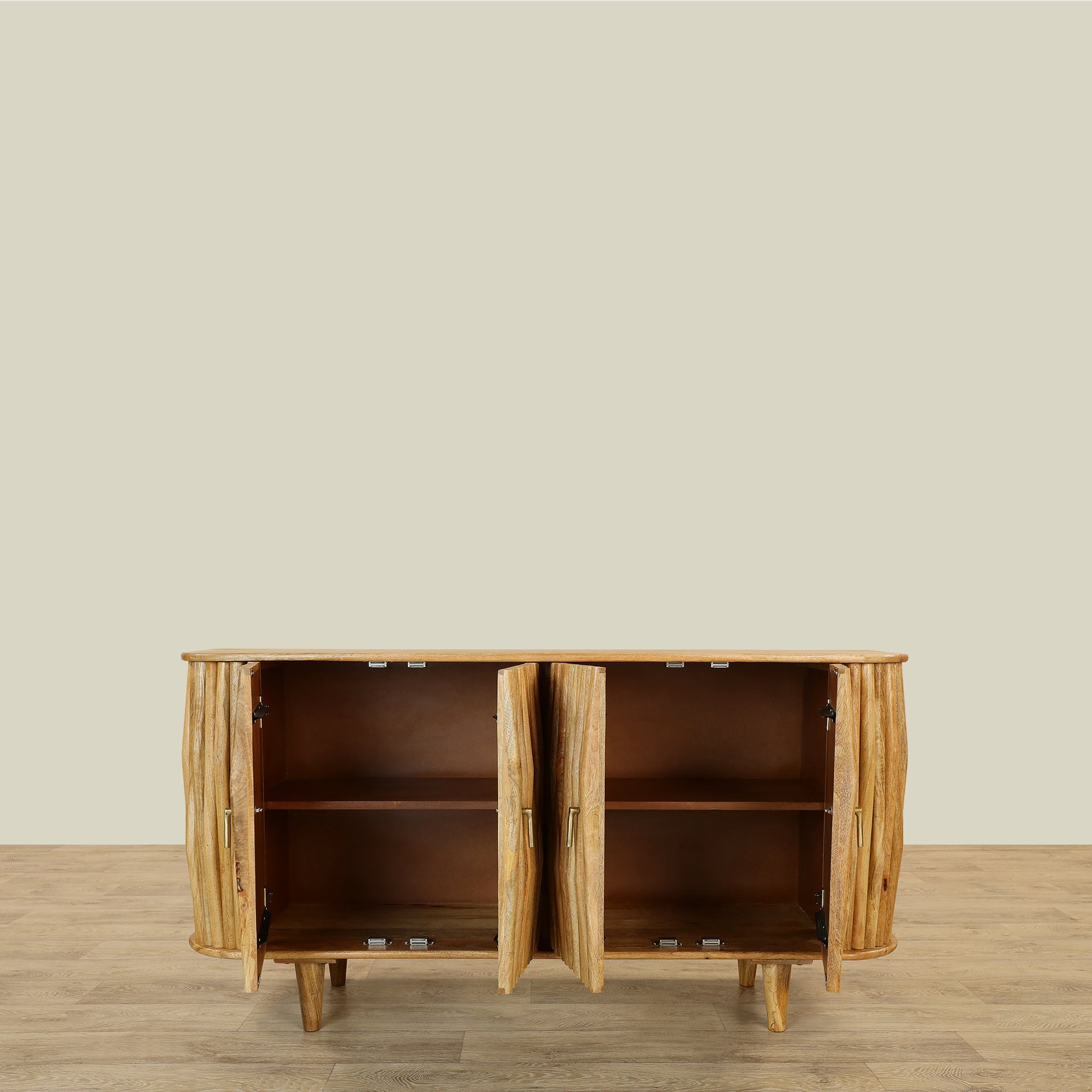 ارتقِ بمساحة المعيشة لديك مع خزانة جانبية خشبية تجمع بين الشكل العملي والمظهر الأنيق. تصميم متعدد الفروع مع أربعة أبواب بمفصلات يوفر لك مساحة تخزين واسعة ومنظمة، بينما يضفي اللون البني الدافئ دفءً راقياً على ديكور المنزل.