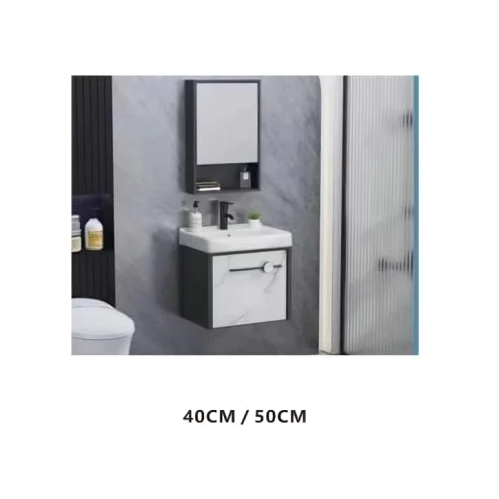 جدد حمامك بخزانة مغسلة أنيقة وعملية تجمع بين مظهر معاصر ومتانة المواد. الهيكل من الألومنيوم المقاوم للرطوبة مع حوض سيراميك عالي الجودة يمنحك مزيجاً مثالياً من الأناقة وسهولة الصيانة، مناسب للحمامات الصغيرة والكبيرة على حد سواء.
