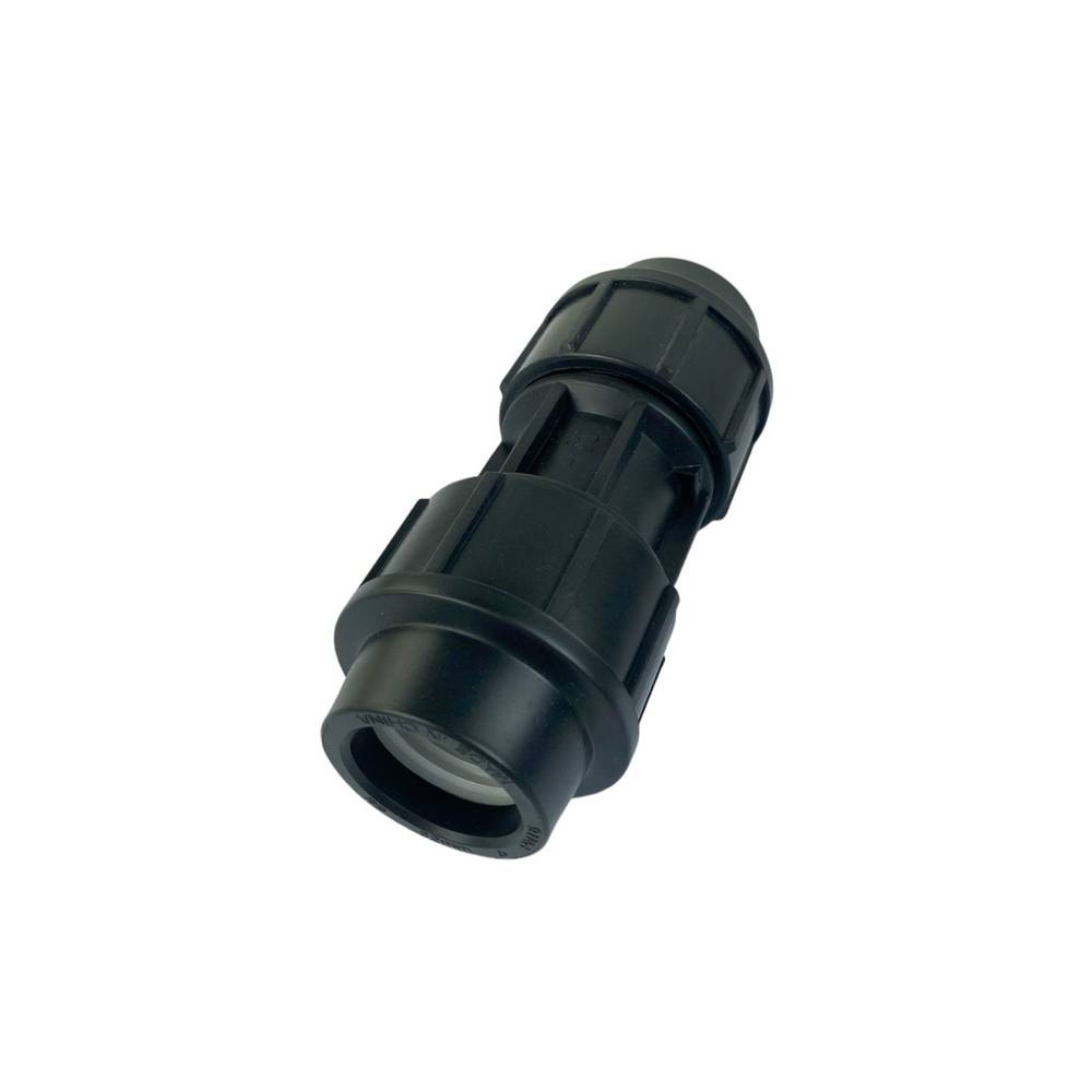 وصلة بلاستيكية متينة مصممة لتوصيل أنابيب الري بقطر 32 مم، توفر نقلاً موثوقاً للمياه تحت ضغوط عالية وتتحمل ظروف البيئات الزراعية القاسية.