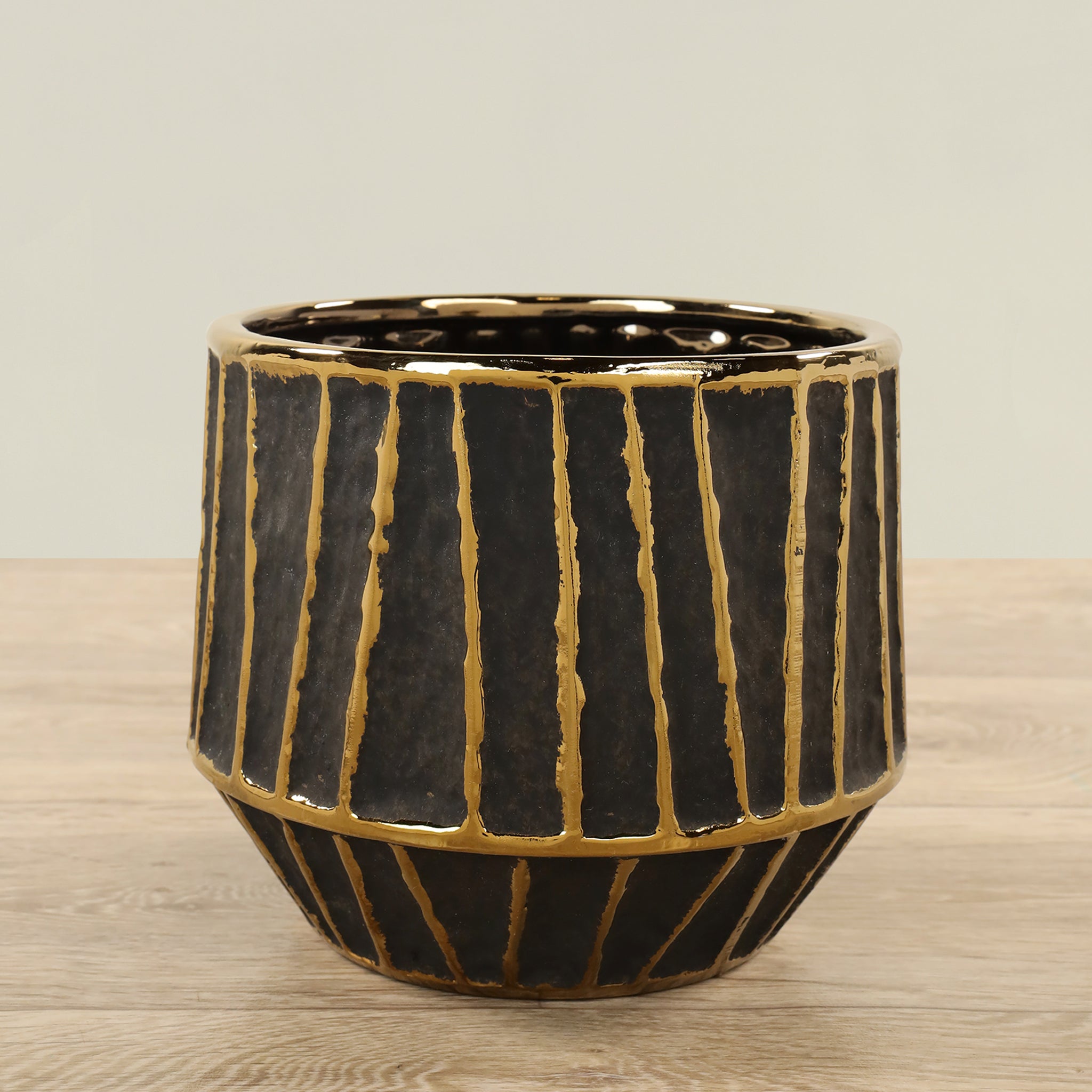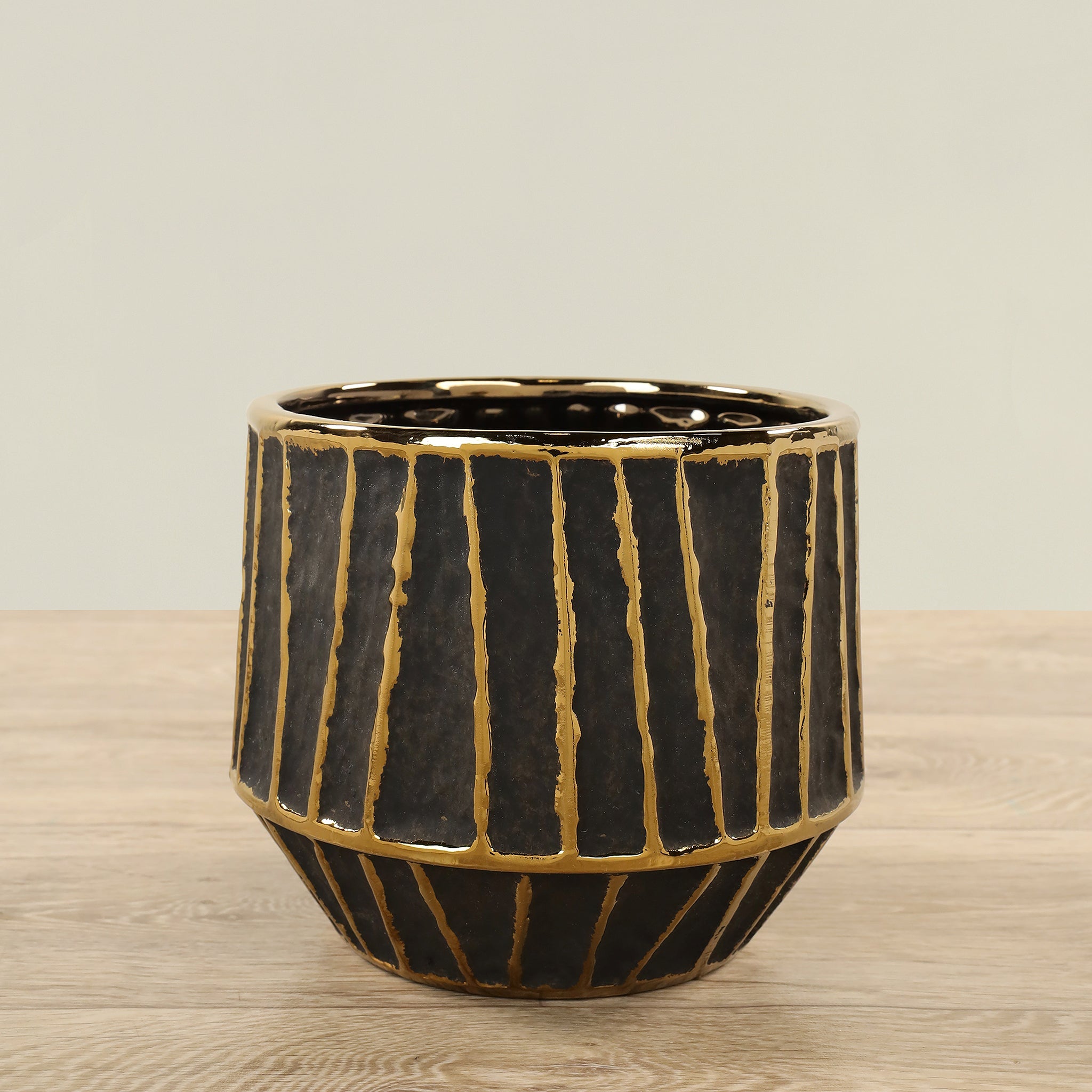 امنح مساحتك لمسة من الأناقة الخفيفة مع وعاء سيراميك دائري بلون أسود غير لامع. تصميمه البسيط والراقي يجعله قطعة مثالية لعرض النباتات أو كعنصر ديكور مستقل يكمّل الديكورات الحديثة والكلاسيكية على حد سواء.