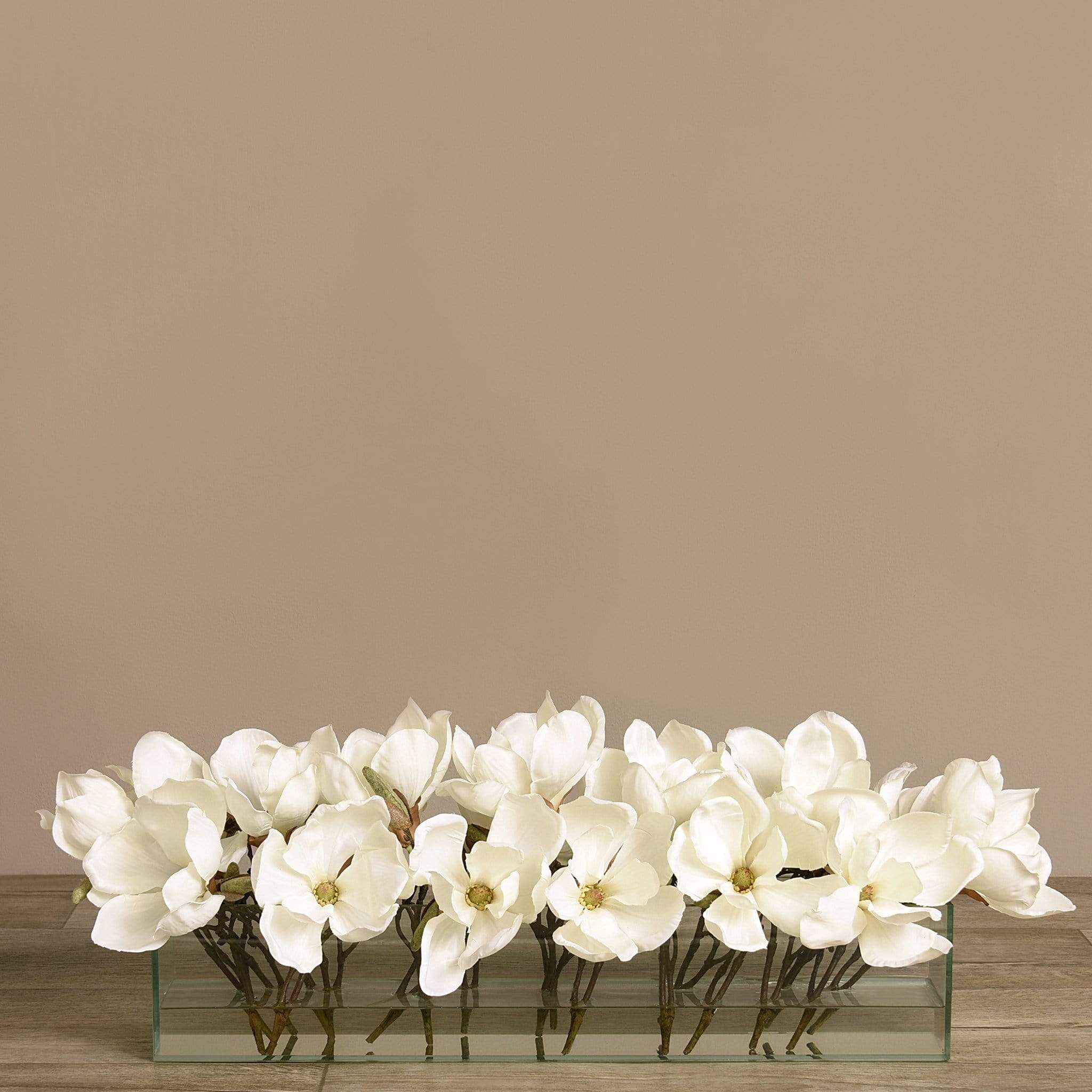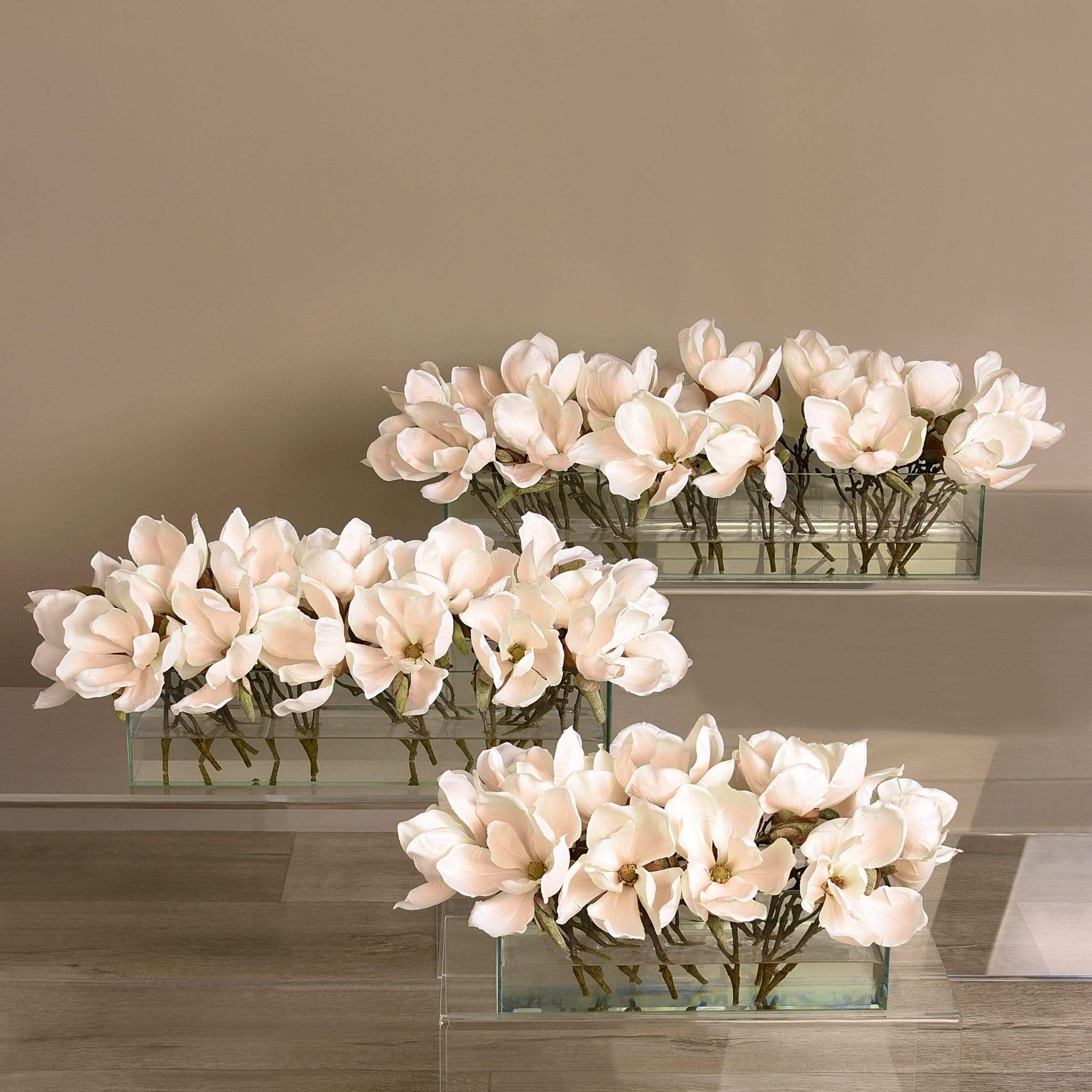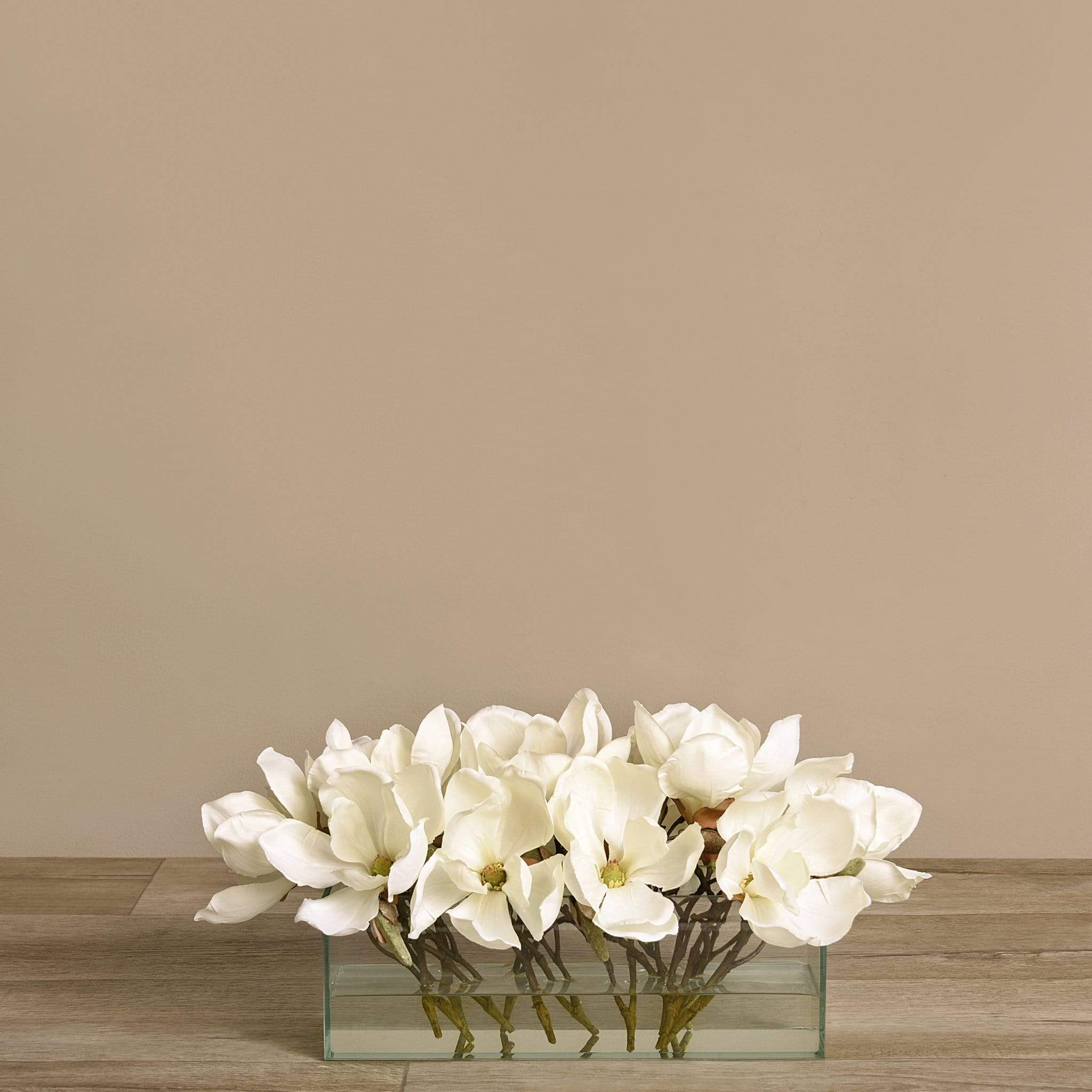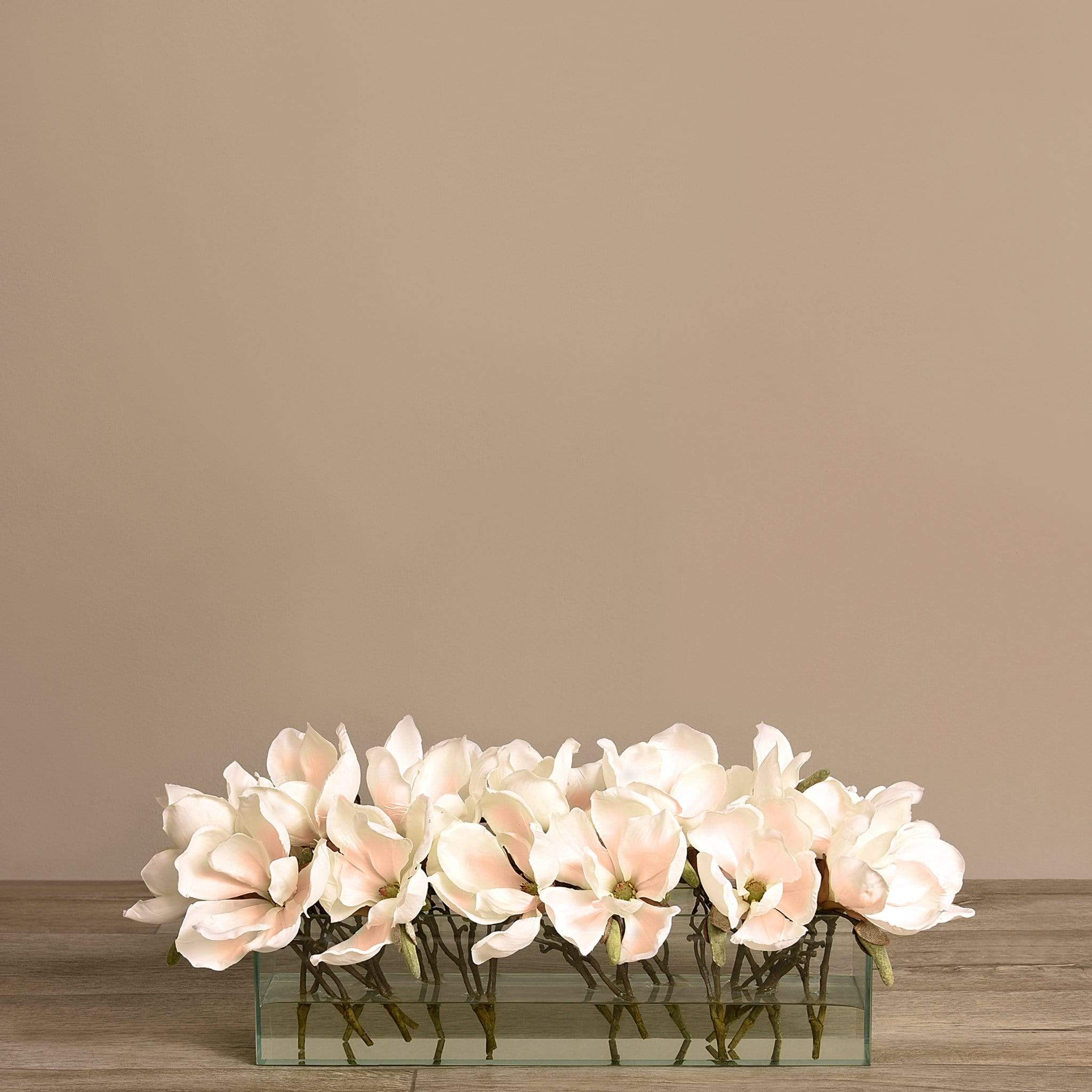 باقة ماغنوليا صناعية في مزهرية زجاجية